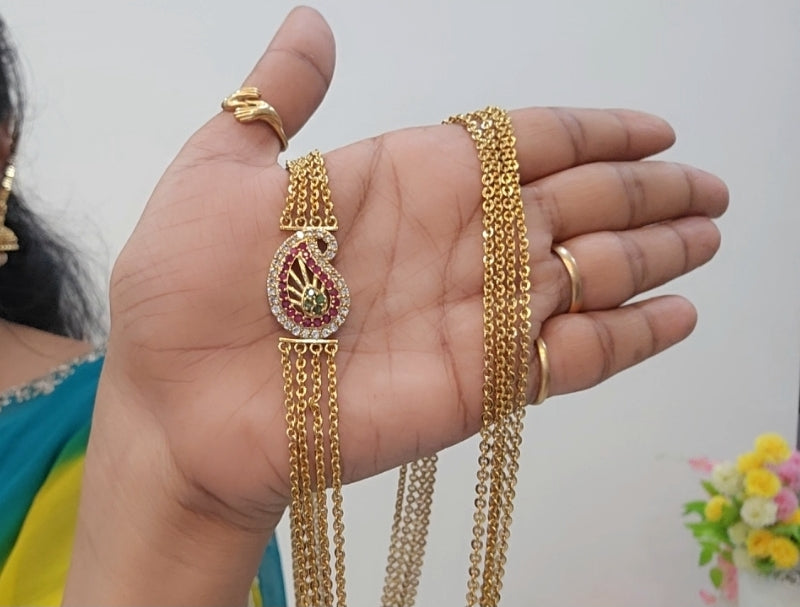 Chandraharam- SLS95J is a finely crafted traditional ornament that embodies elegance and cultural heritage. Designed with expert precision, it offers a timeless appeal suitable for special occasions and celebrations. This piece enhances your attire with its intricate detailing and superior craftsmanship, making it a valuable addition to your jewelry collection.
