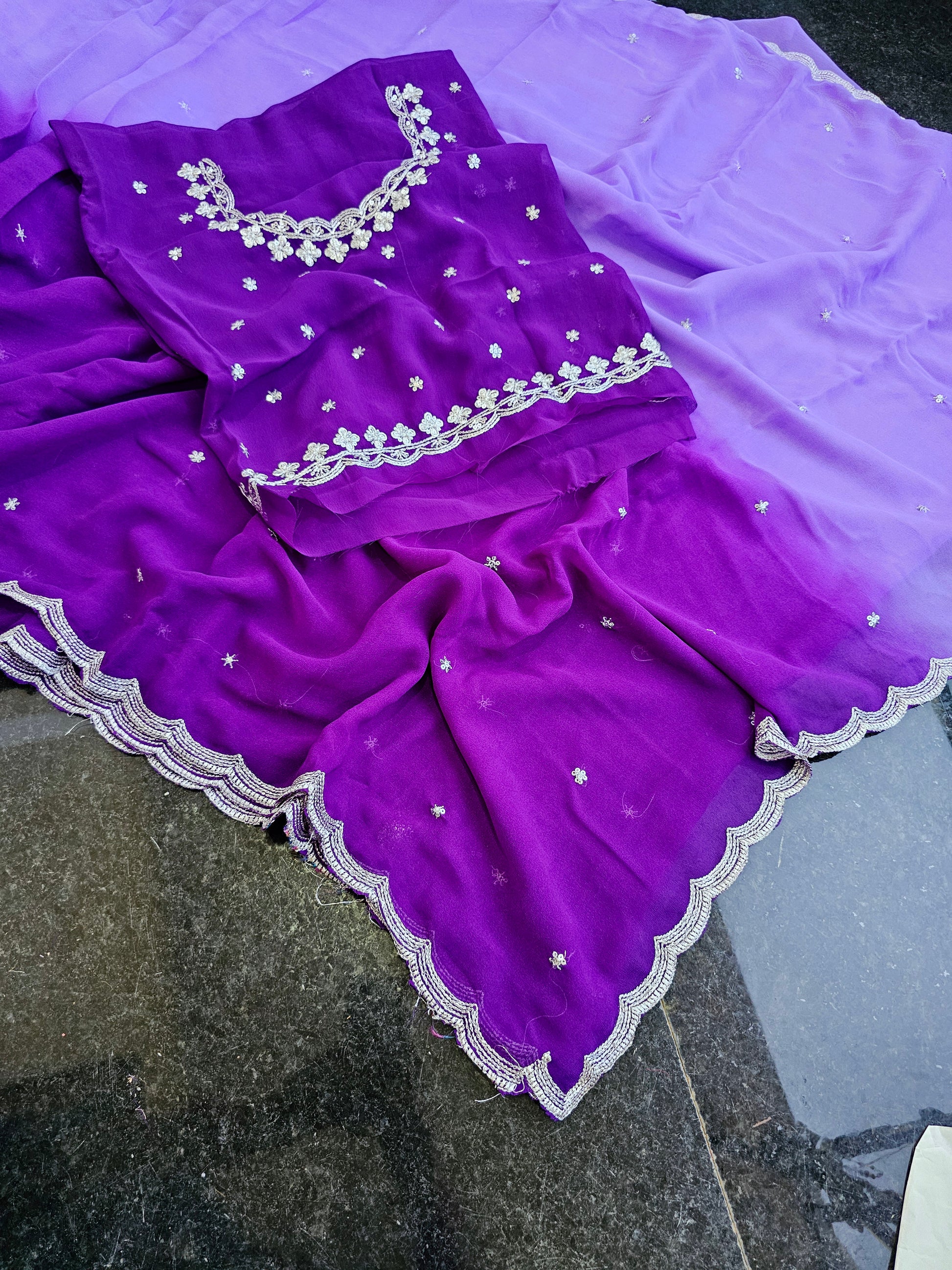 Elevate your ethnic wardrobe with this expertly crafted cut work saree paired with a matching work blouse. The intricate cut work detailing adds a refined texture and elegance, making it perfect for festive occasions and formal events. Designed for comfort and style, this ensemble showcases skilled craftsmanship that highlights traditional artistry with a contemporary touch. Ideal for those who appreciate fine detailing and sophisticated fashion.