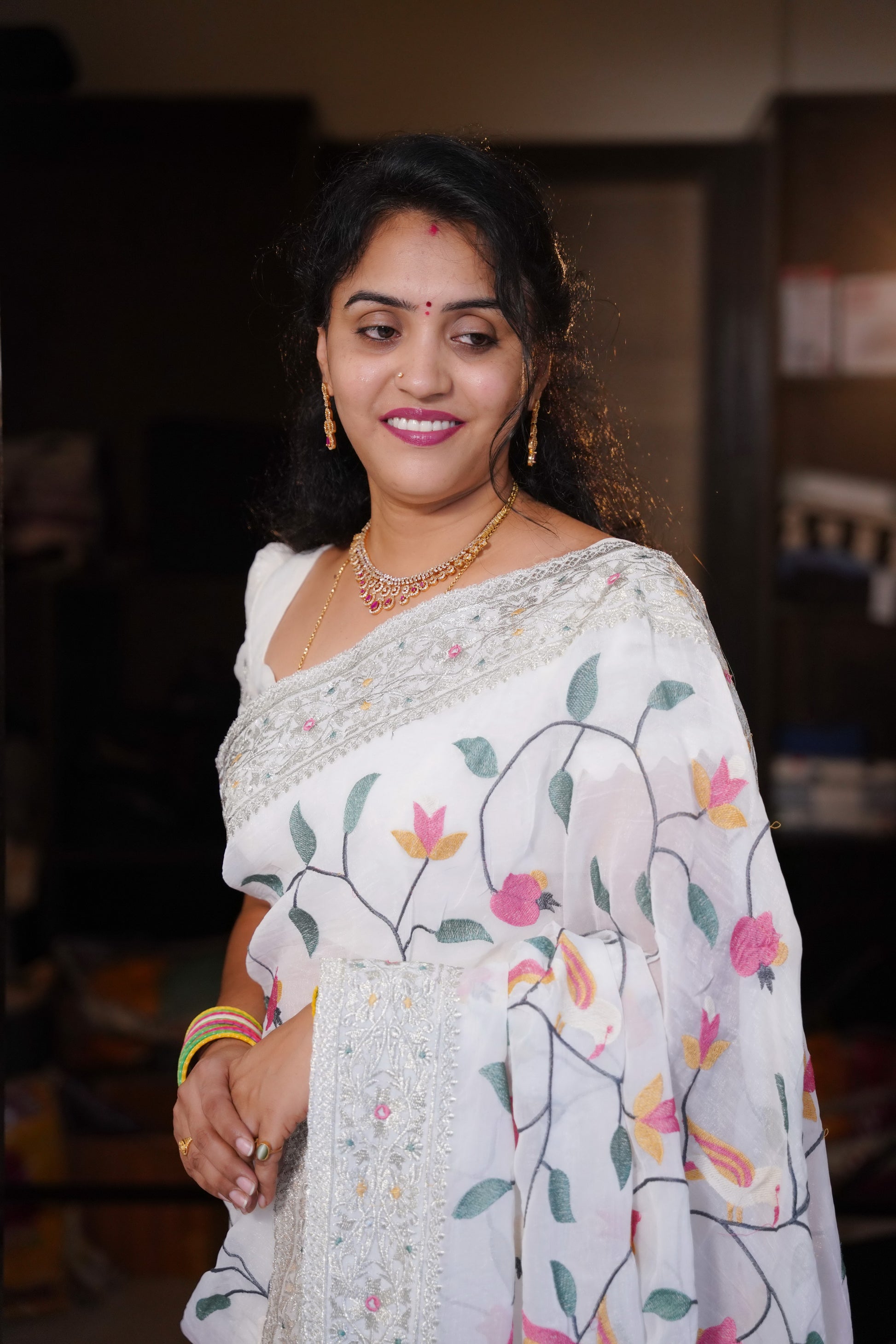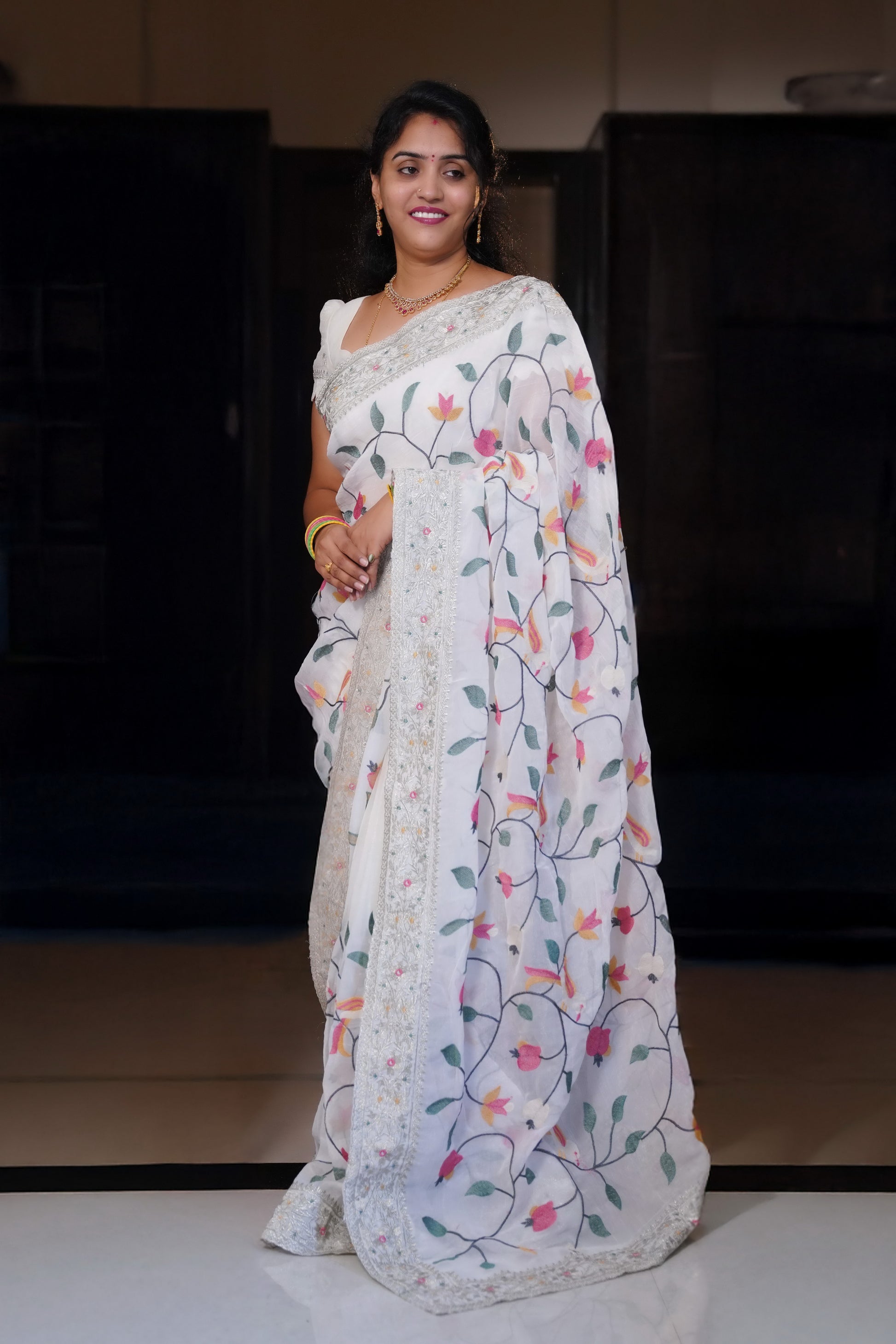 Experience elegance with the Glass Tissue Saree, a lightweight and shimmering fabric that drapes beautifully for a graceful silhouette. Its translucent texture adds a subtle sheen, perfect for festive occasions and formal events. Crafted to offer comfort without compromising style, this saree enhances your presence with its delicate yet striking appearance. Ideal for those who appreciate refined craftsmanship and timeless charm.